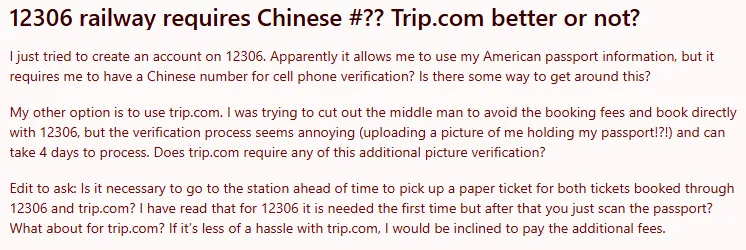 他们给我展示手机里的12306页面,如果要解除购票张数限制,需要上传护照,等待人工核验,之前运气不好,不知道为啥就被卡住了。