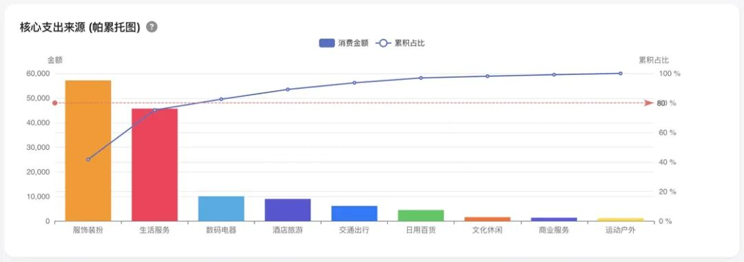 大额视角:80%的大额支出集中在「服饰装扮」和「生活服务」,非常典型的悦己型消费。