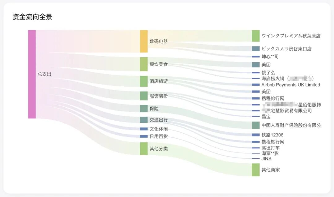 资金流向全景——展示支出-分类-商家三级结构