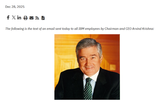 12月28日,IBM董事长兼CEO克里希纳(Arvind Krishna)向全体员工发送了一封名为“怀念郭士纳”的邮件。在邮件中,克里希纳充分赞扬了郭士纳带领IBM走出危机的贡献,“郭士纳接手 IBM 之际,公司未来正处于风雨飘摇之中,公司业务承受着巨大压力,甚至关于 IBM 是否应拆分都引发了激烈的争论。郭士纳在任期间的领导力重塑了整个公司。他没有沉湎过去,而是始终聚焦客户未来的需求。