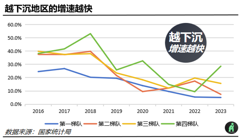 2)2024年全行业增速8%的电商行业,是一个50%份额的TOP 4省市增长低于5%,另外50%份额的中下沉地区增长超过10%的分层市场。