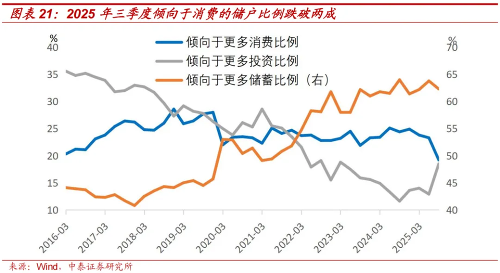 一是居民消费意愿回升需要时间。央行城镇储户问卷调查显示,倾向于更多消费的储户比例,从2025年二季度的23.3%,下降到三季度的19.2%,表明目前中国居民的消费意愿不足。