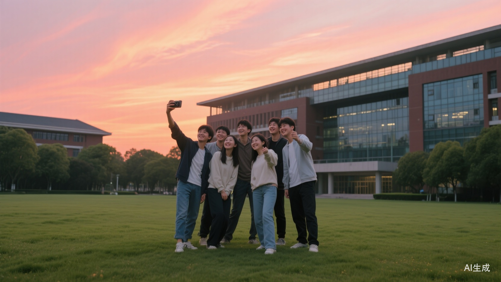 白日里的喧嚣随着日落沉了下去,校园像是按下了慢放键。漫天的霞光漫过楼宇的顶,把一整天的疲惫都轻轻洗去了——这一天的收尾,是安静的,却又带着让人踏实的力量。喧嚣褪尽后,是藏在风里、光里的静谧温柔。