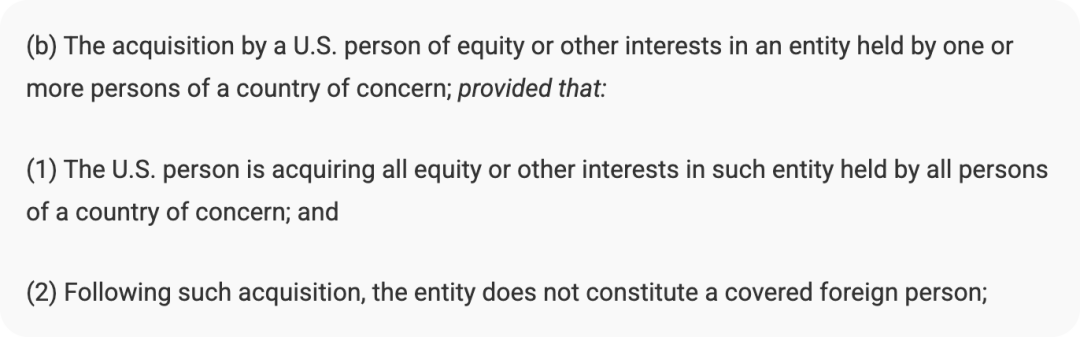 (1)美国主体收购了全部受关注国家(即中国)主体持有的权益。