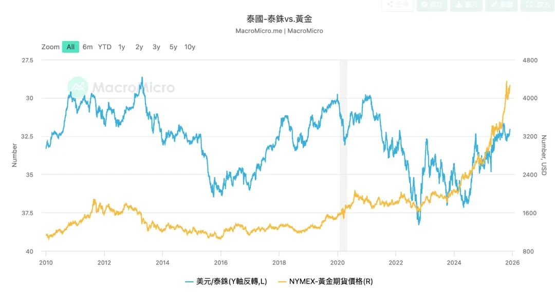 所以黄金价格几乎成了泰铢走势的一个前瞻指标。要让泰铢回归正常,黄金需要先走弱。