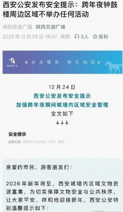 但如今,上海外滩景观灯准时熄灭,西安钟楼发布了公告,明确表示没有任何庆祝活动,广州塔周边实施严格的交通管制,合肥淮河路步行街、郑州金融岛等地也陆续宣布无任何跨年演艺、倒计时活动。