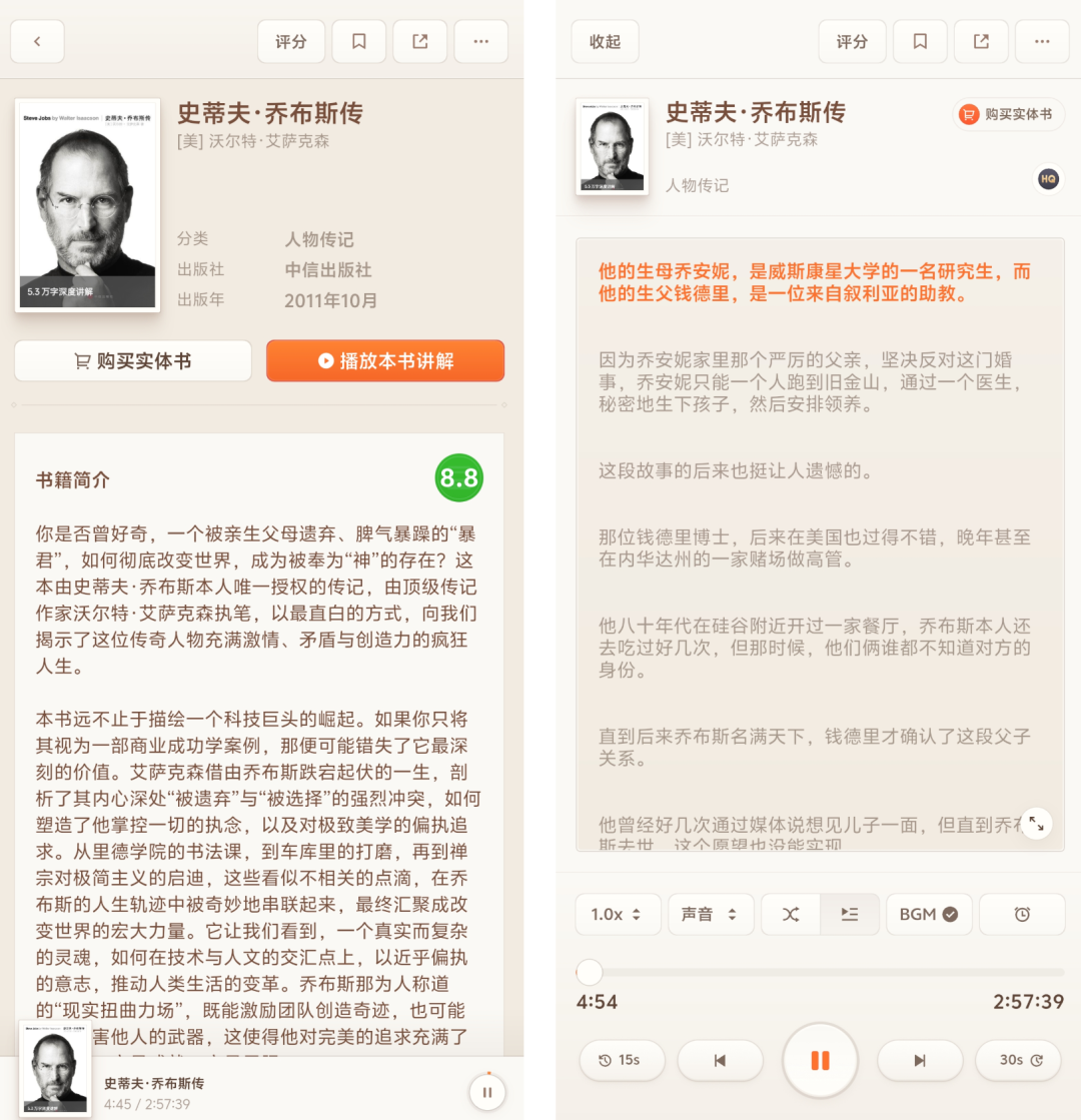 和传统听书只做文字搬运工有所不同,“且听”主打用 AI 补充书本背景、延伸知识点,帮用户搭起完整的认知框架。