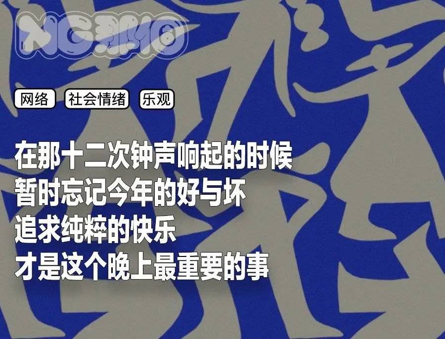 矛盾的是,我们却很少能看到有人会在跨年的时候Emo。在朋友圈和群聊里,不是在感叹抒情,就是在互相祝福。