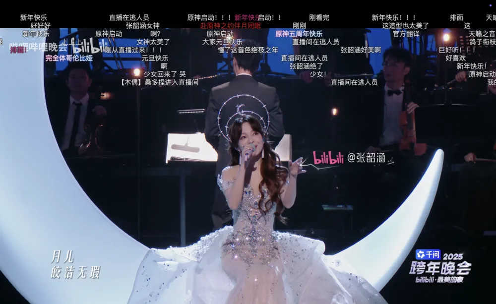 跨年晚会上,张韶涵演唱原神歌曲《伴月同眠》