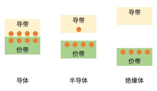 半导体材料的能带结构介于二者之间,导带与价带之间的禁带宽度不大不小,恰处在中等范围。这样就可以通过控制价带电子的能量,来控制材料是否导电。