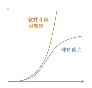 一方面,硬件基础陷在旧原理中,靠拼命提高工艺已经很难再挤榨出油水。另一方面,软件和应用的需求仍然保持在指数级甚至更快的发展速度。