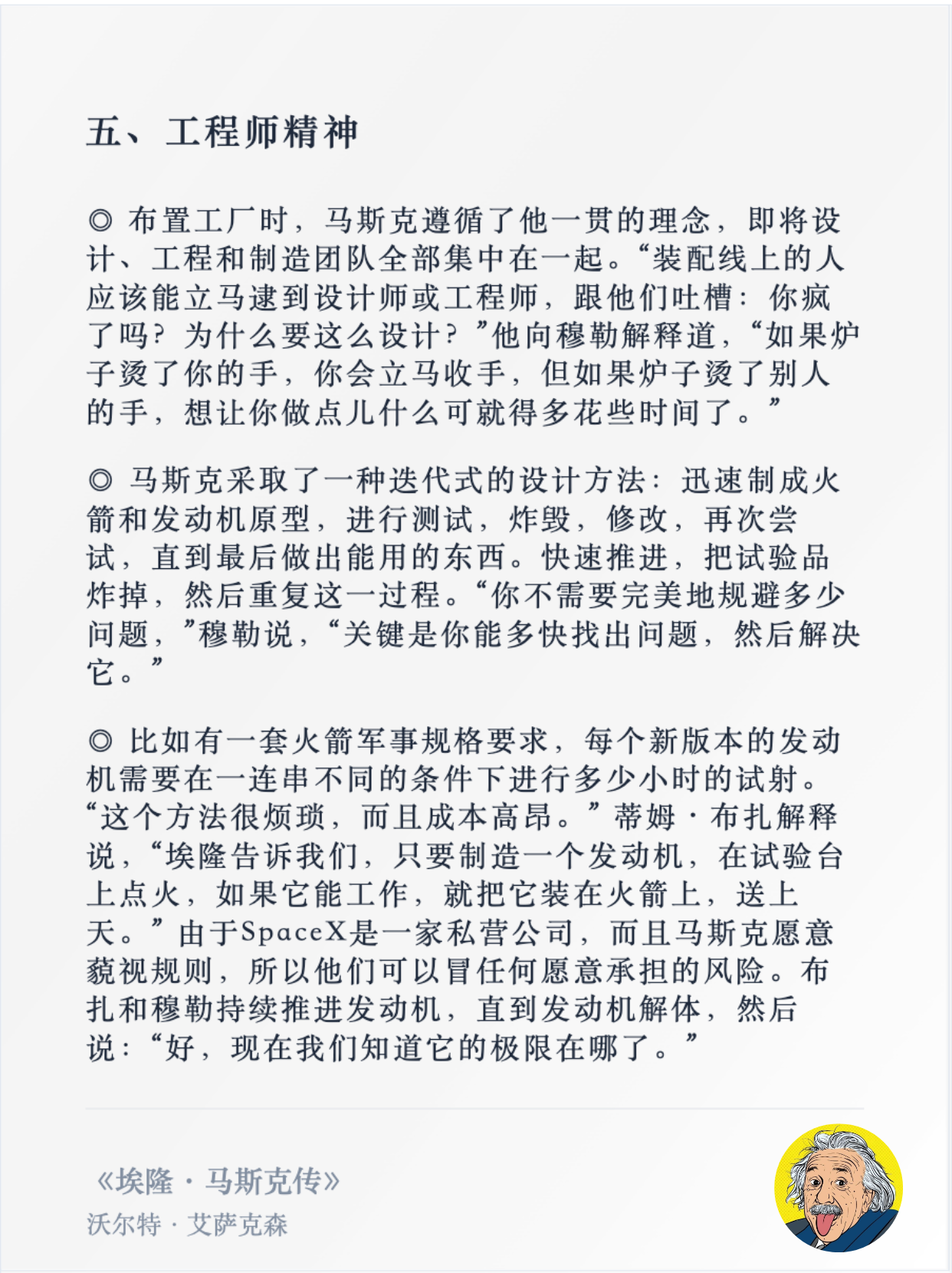 4. 容忍“小事故”,加速迭代。你看,马斯克连火箭炸了都不怕,我们上新一个小功能、尝试一种新生活方式又何妨?核心流程能跑通,就先推出去。在实际运行中发现问题、迭代优化,远比闭门造车高效。