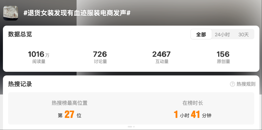 然而,当余先生在29日收到退货时,却发现衣服上沾有大片血迹。尽管他立即提供了拆包视频和物流拒收凭证等一系列证据,但平台的处理却陷入拖延,超过48小时未有明确结果。