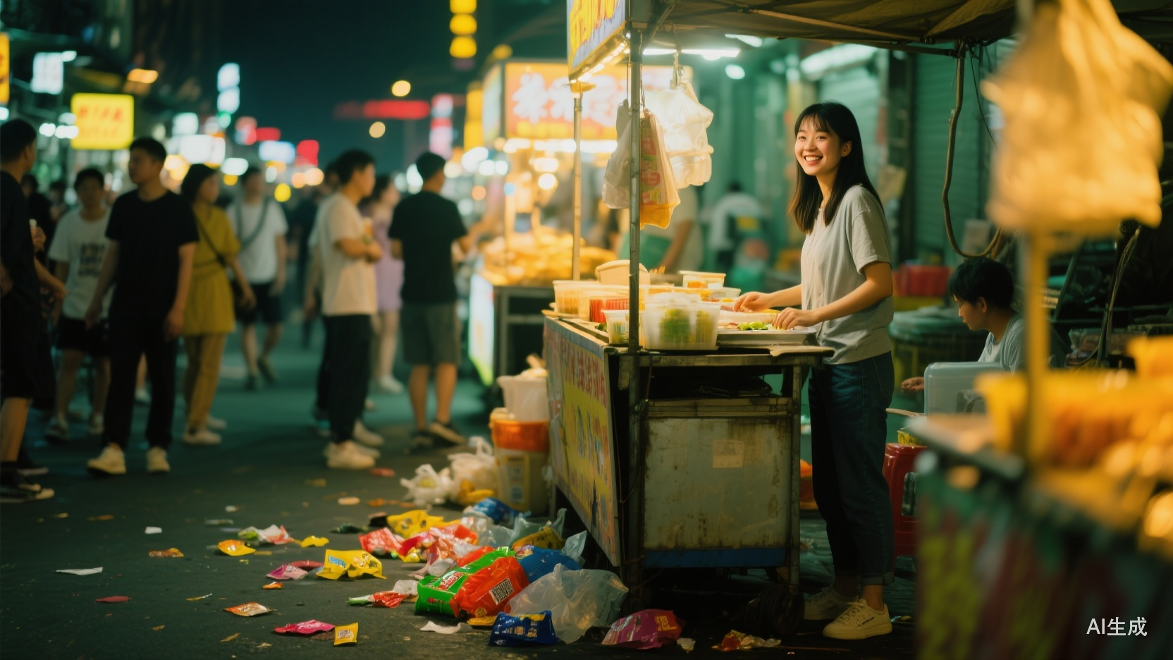 说到这,大家可以回想下今天在街边看到的那些小商小贩。他们是不是都有这么一个特点——虽然摊位上没啥顾客,但是垃圾却多得过于离谱。