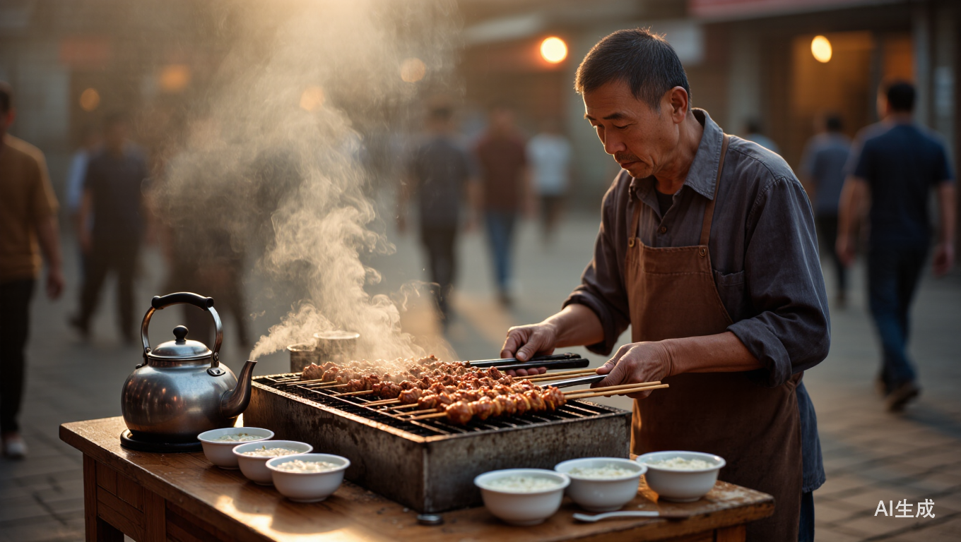 每天到了晚上我也不用再思考去哪里呆,找谁聊天喝东西,我就一个人安静的摆摊,喝茶,烤串,烤火。