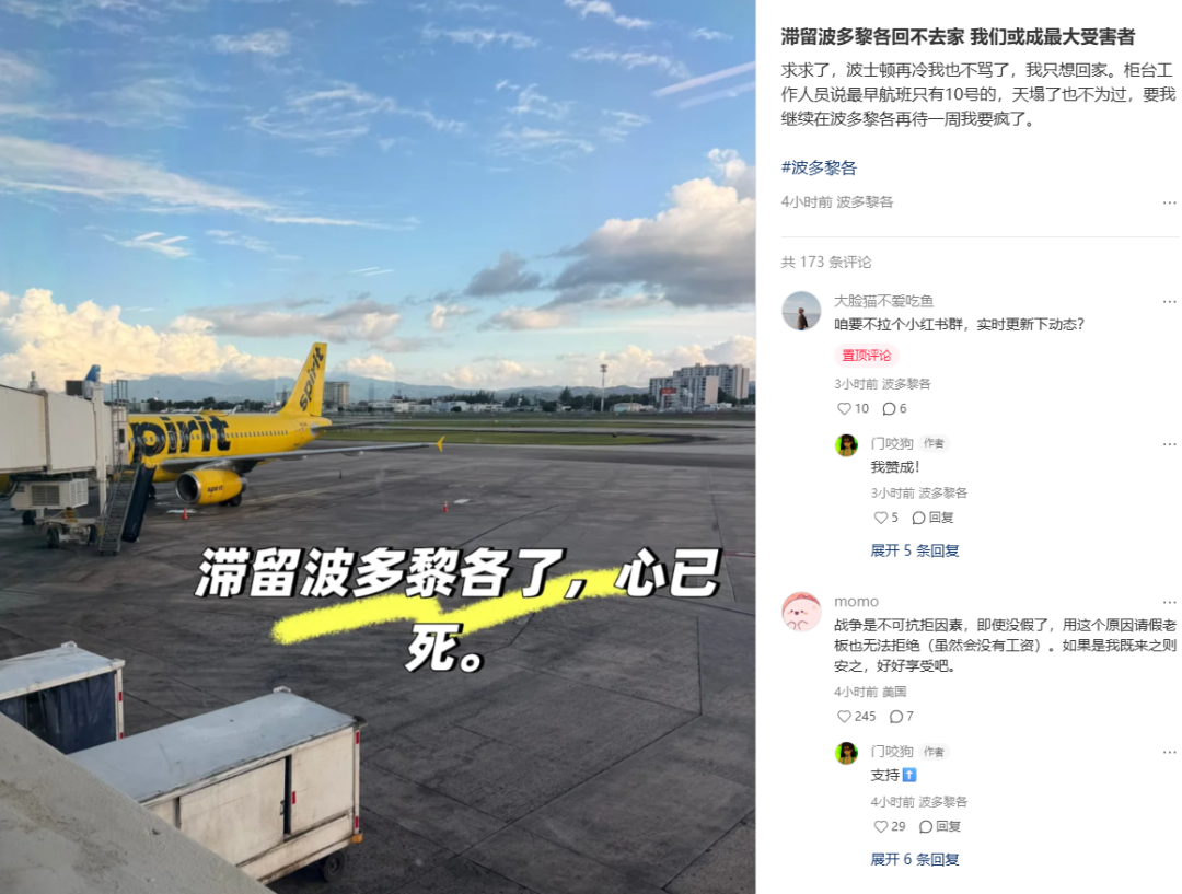 变化很快传导到了普通人行程里,一些原本在波多黎各、圣马丁、阿鲁巴、多米尼加度假探亲的华人,瞬间陷入滞留困境,在小红书频频发布求助帖。