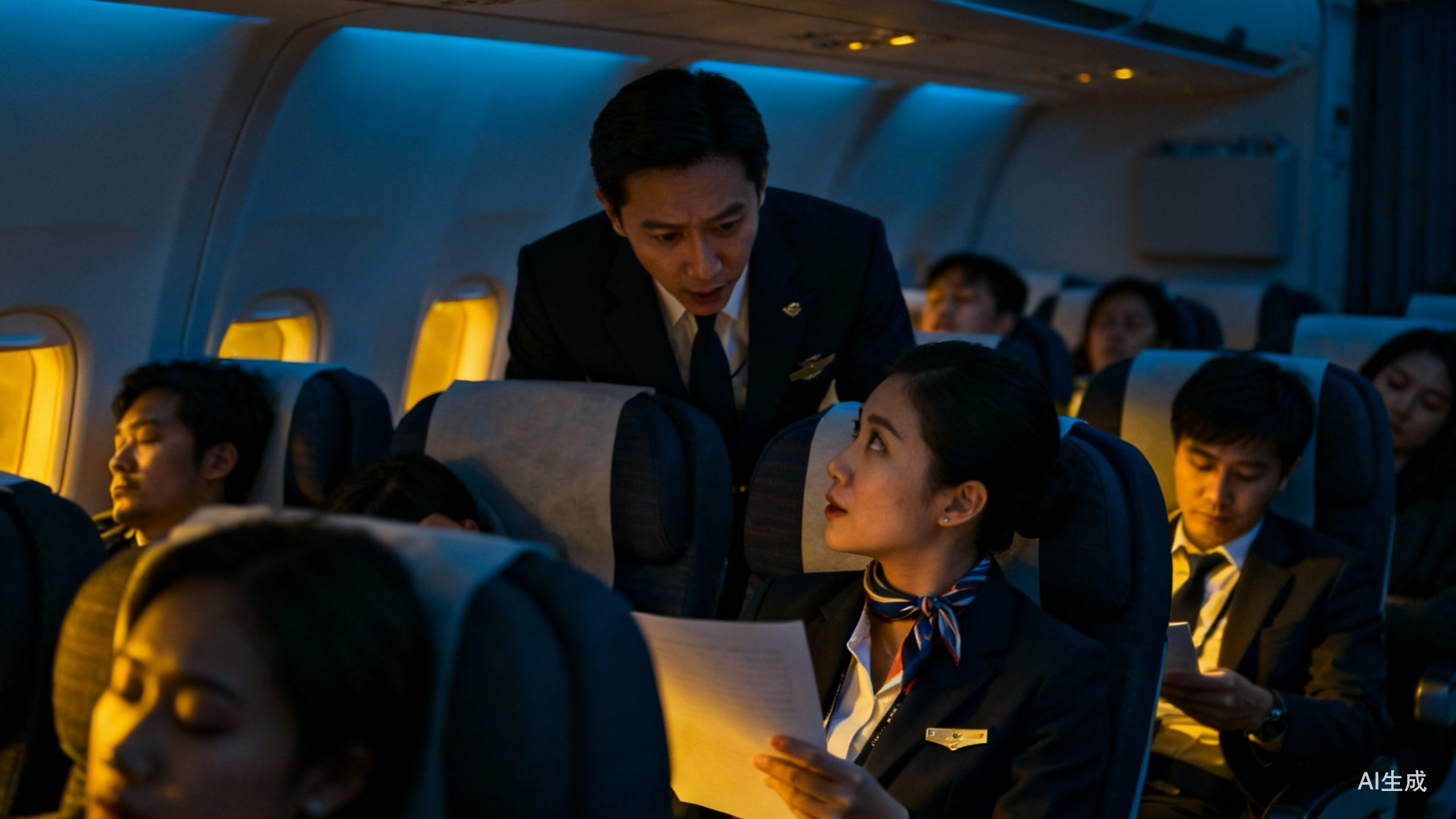 但你如果站在那个航班的现实场景里想一想:那是凌晨一两点,客舱里大多数旅客都已经睡着了。