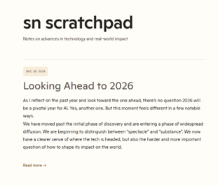 当名人们习惯于在社交媒体账号上用简短的话语分享个人观点,微软CEO萨提亚·纳德拉(Satya Nadella)走起了复古路线,于12月29日开设了一个名为sn scratchpad(意为萨提亚纳·德拉的便签本)的个人博客,以长文章的形式分享他对AI未来的思考。