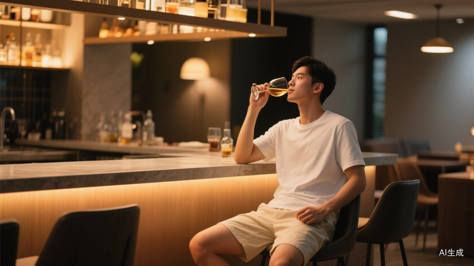 不等采访正式开始,黎子安手里的酒杯就已经空了。在导演为麦克风换电池的功夫,黎子安自言自语着:“我也换块‘电池’。”说着,他走向吧台,又给自己倒了一杯酒。