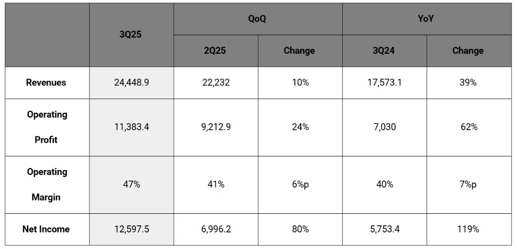 (SK海力士公布三季度财报,其中运营利润首次突破10万亿韩元大关,达到11.38万亿韩元,同比暴增62%)