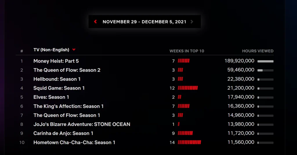 这一年,网飞相关负责人在解释为何减少投资时,将当年上线的韩剧《鱿鱼游戏》拉来作比。韩剧可以在全球数十个国家中名列前茅,但日本动画达不到那种程度。