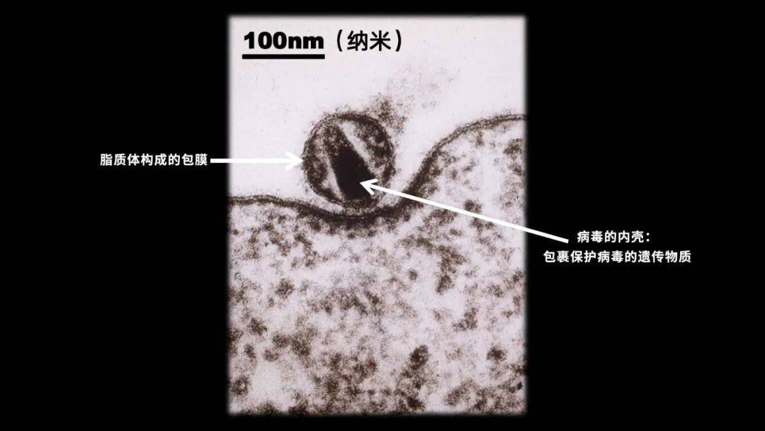 病毒最外面是脂质体构成的包膜,上面有很多蛋白质。这些蛋白质是它的GPS,对它感染细胞、进入细胞非常重要,也是我们体内抗体反应的一个主要靶标,抗体封堵病毒,就能不让它进入细胞。中间那个黑色的、有点像玉米豆的,是它的内壳,包裹了它的遗传物质。