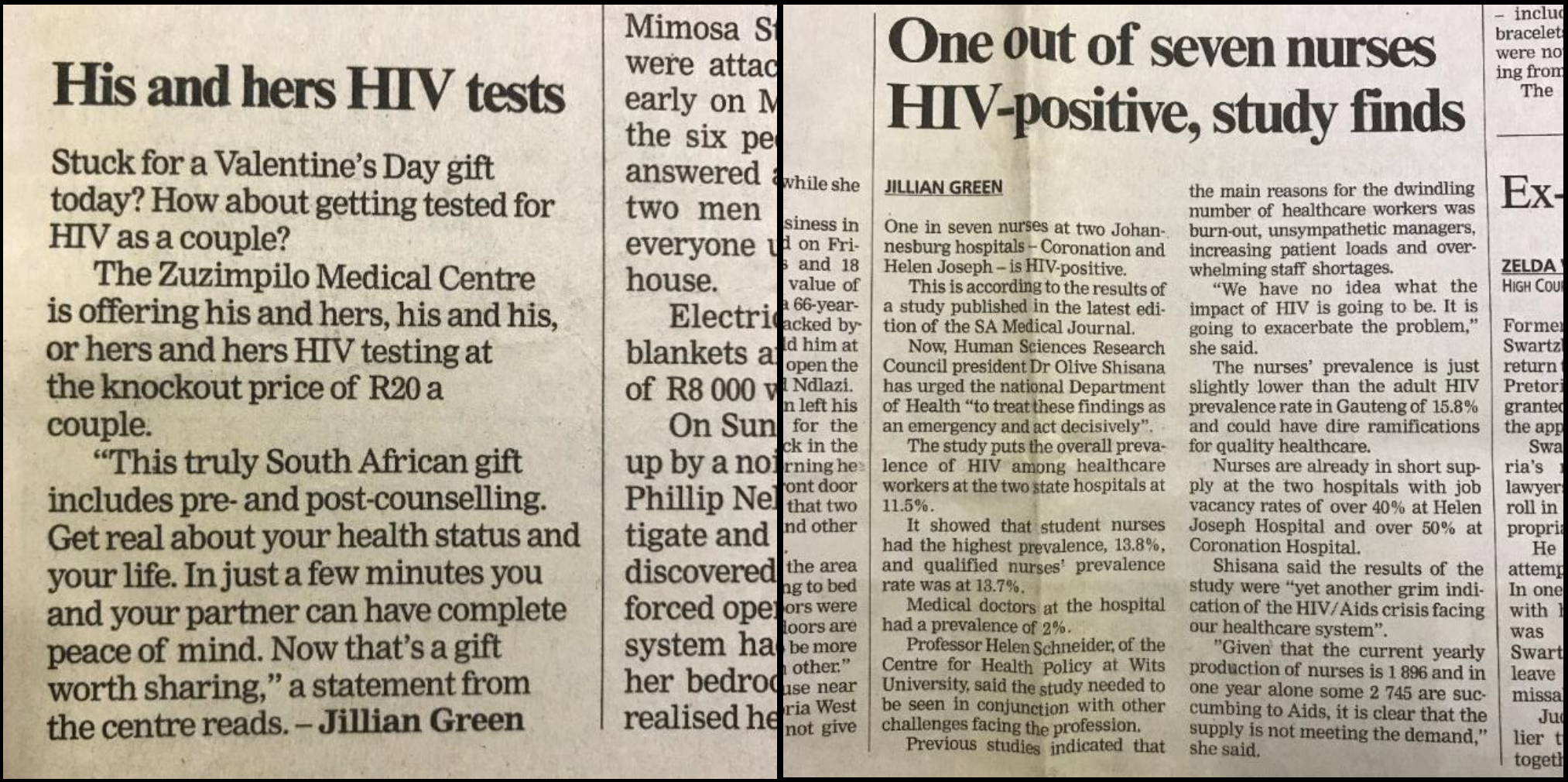 2007年,我去南非参加医学委员会组织的会议,顺手拿了一份当地的报纸。当天正赶上情人节,报纸推荐的情人节礼物竟然是“艾滋病快速诊断试剂”。除此之外,报纸还报道了当地一家医院的护士,七人里就有一人感染艾滋病。