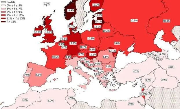 由于这个发现,全球开展了大面积的人类遗传学研究,发现这个基因缺陷大多数出现在欧洲,尤其是以北欧为多,有的地方的基因缺失概率可以高达10%~15%。很遗憾,在我们亚洲、在非洲,这样的基因缺失极其稀少,几乎可以说是不存在。