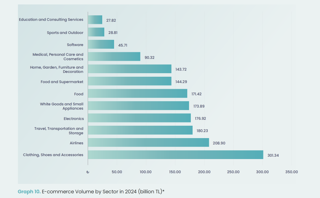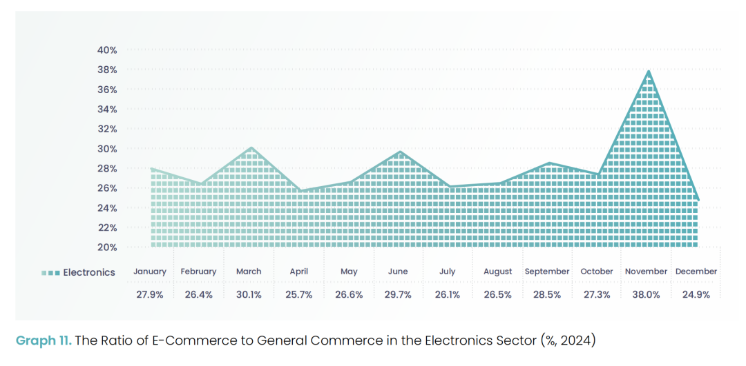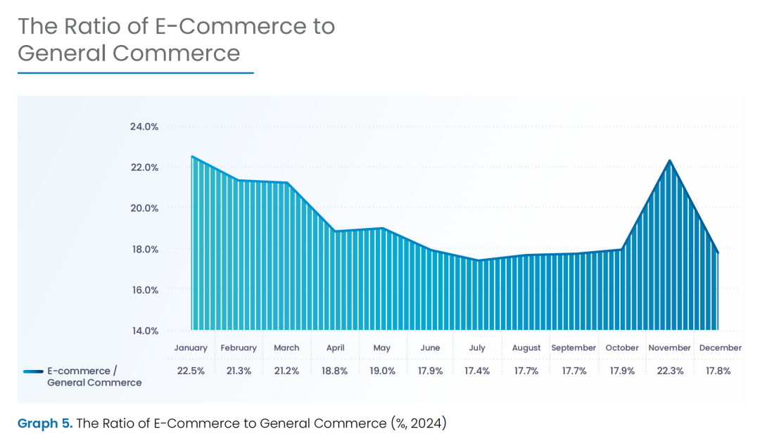 根据土耳其官方已公开的数据显示,2024年电商交易总额为3.16万亿土耳其里拉,同比增长61.7%;其中零售交易总额为1.62万亿土耳其里拉,同比增长63.7%;在总共59.1亿笔交易中,共有18.5亿笔为零售相关,零售交易数量同比增长10.1%。