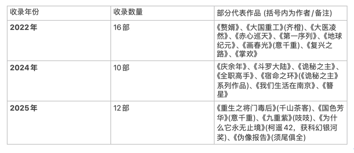 大英图书馆从2022年起,分三批收录38部中国网络文学作品,有《大国重工》《复兴之路》,也有《赘婿》《重生之将门毒后》《斗罗大陆》《诡秘之主》。大英图书馆认为,这些作品反映了中国乃至亚洲地区的当代文化现象。完整书目你可能会有兴趣,我干脆放在文末。