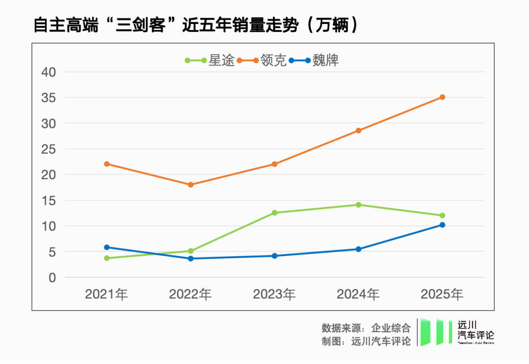 几年过去,领克销量向宽,去年卖出35万辆新车;魏牌售价向高,新车成交均价29.37万超过了奥迪。相比之下,去年卖了12万辆,仍主要战斗在15-20万区间的星途略显尴尬。