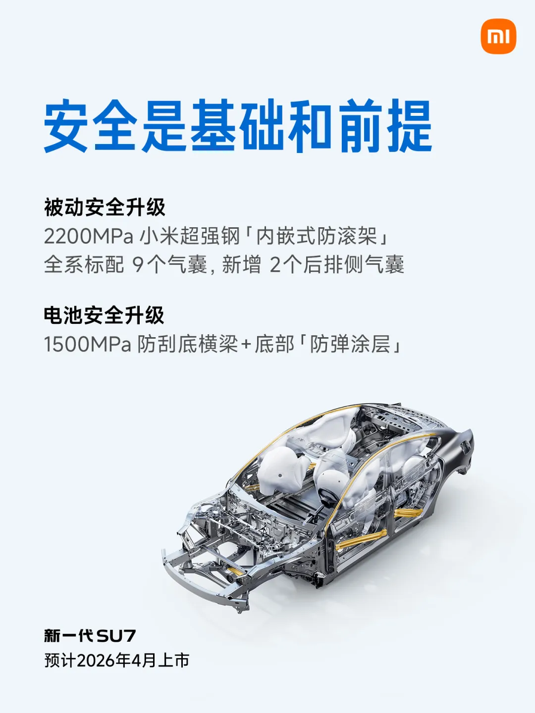 最后,就是网上吵翻天的安全,新一代SU7也是进行了升级。