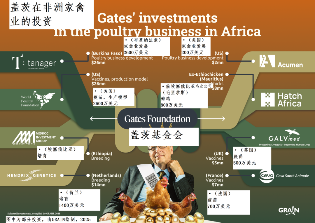 该图显示了盖茨在非洲不断扩大参与家禽业务