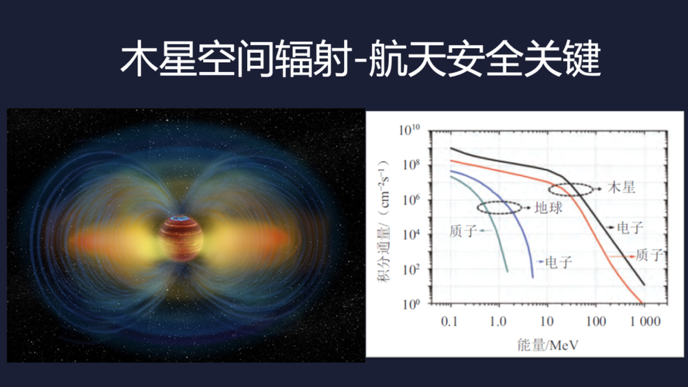 任何一个飞行器要经过它,首先得面临这些高能辐射环境的应对,它的辐射环境相对我们地球来说,不管是从能量,还是能量的通量都要大上成千上万倍,什么意思呢?如果你设计一个飞船在地球上运行几年,完成它的各种使命,你把它搬到木星上去,几天就坏了,甚至几个小时就坏掉了,因为它的能通量实在是太高了。