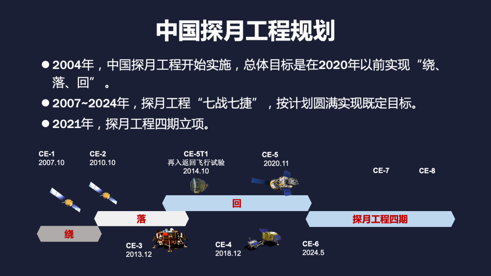 我们知道在世界各国的文化里面,都有一个共同的内容,就是人类对太空的向往。实际上月球是各个国家在现代太空探索的过程中的第一站,我们中国也是如此,现在我们正在实施的是探月工程4期。
