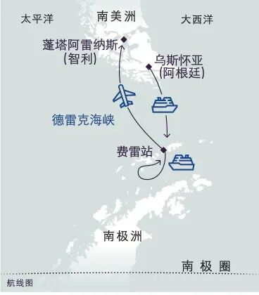 常见产品是Antarctica21公司的海空联航路线,从智利的城市蓬塔阿雷纳斯飞越德雷克海峡,8-10天行程,价格10-20万人民币起。