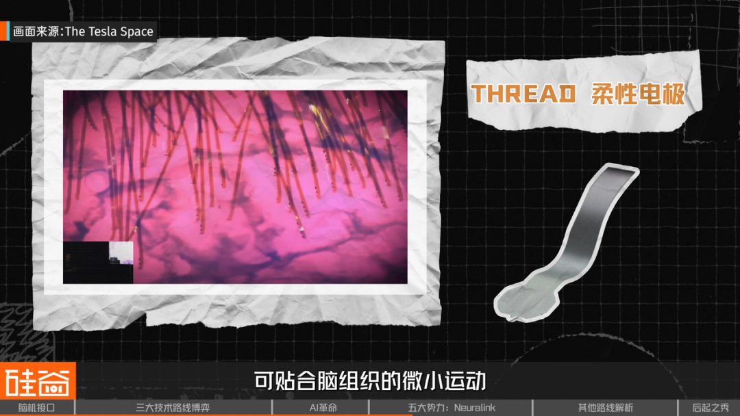 其次,Thread柔性电极,这是Neuralink最核心的创新之一。