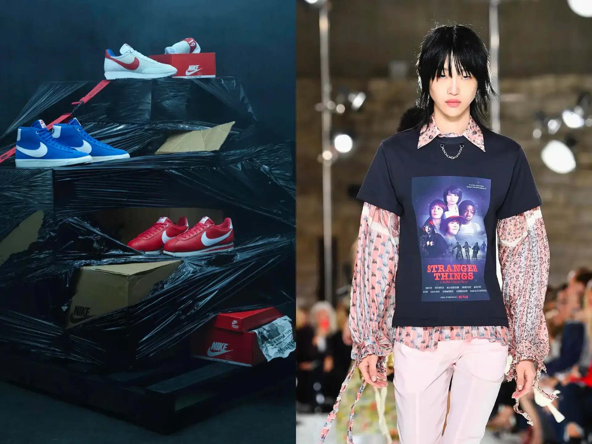 从2016年第一季更新后,它的复古美学便开始影响一届主流审美。像Nike、Levis等一些在剧集中出现过的品牌也先后出了霍金斯联名。怪奇的印花也出现在Louis Vuitton 2018 春季系列秀场。