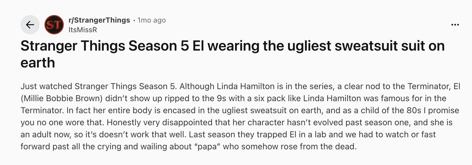 都最终季了,女主角Eleven还穿着秋裤拯救世界。观众这次是真的忍不了了。