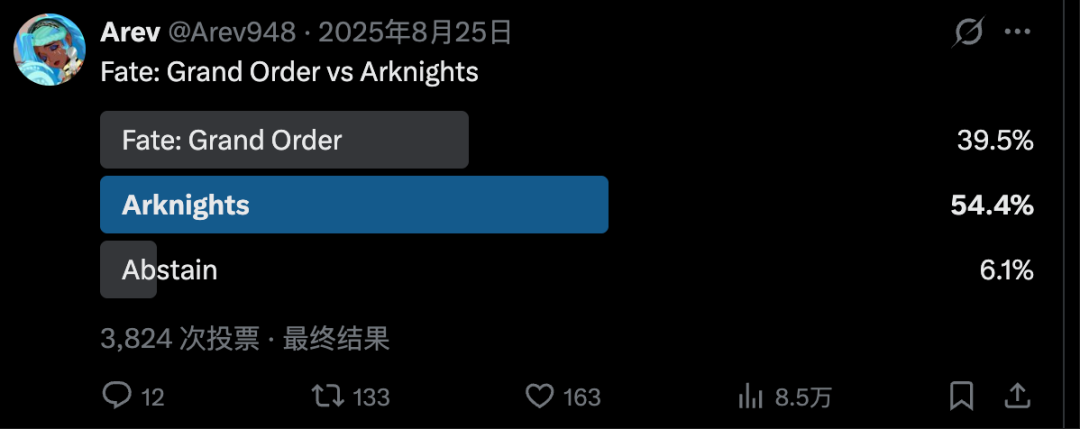 而且其实早在今年八月份,他就发起过“二游剧情谁更牛逼”的投票比赛,当时是《明日方舟》取得了最后的胜利。