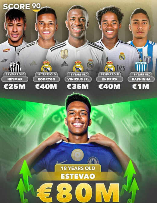 谁是当下英超最火的巴西球员?布伦特福德的新一代“蜂王”伊戈尔·蒂亚戈是优质的候选人,然而论身价和潜力的话,效力切尔西的埃斯特旺是第一主角。巴西少年在2025年12月份的身价达到了8000万欧元,在成为英超最贵巴西人之际,顺便制造了“英超亚马尔”的话题,而在最新一期的CIES足球天文台最新报告中,埃斯特旺的身价达到了1.189亿欧元。