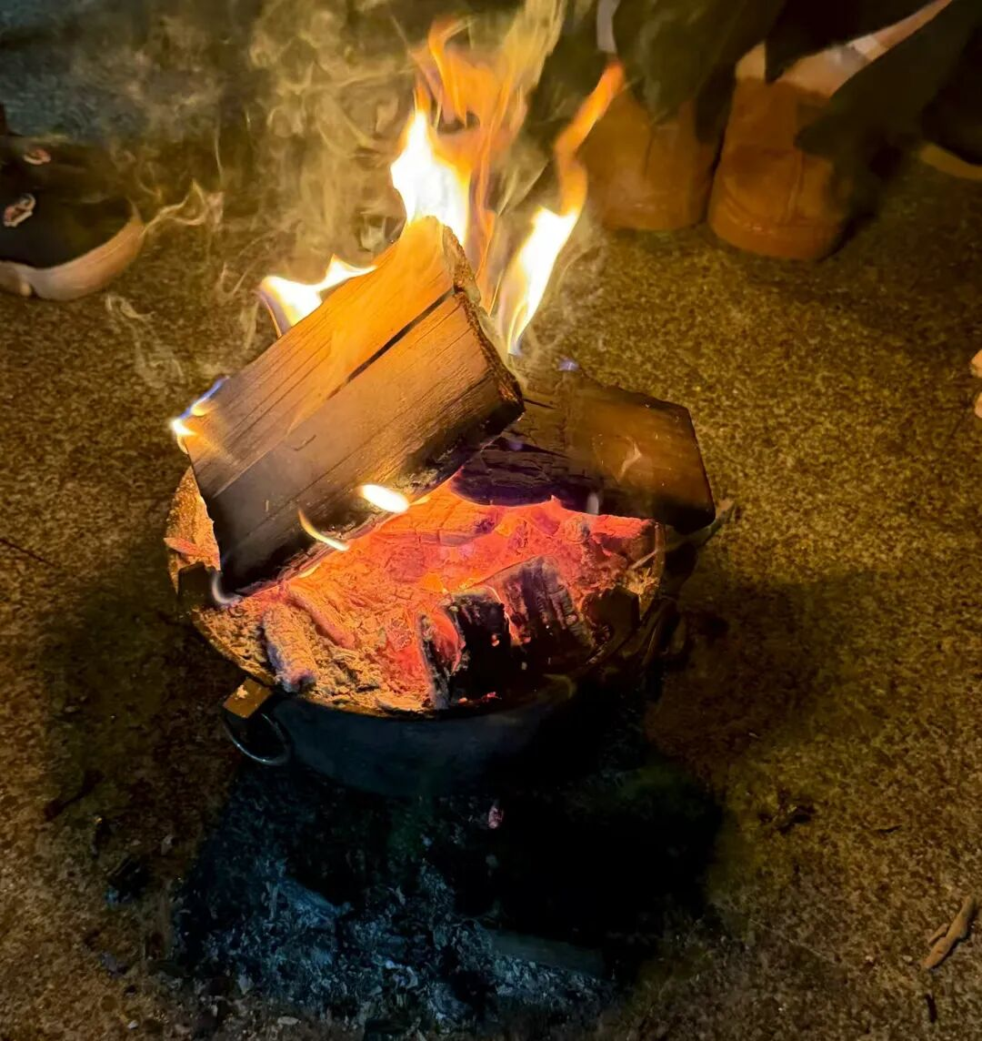 昨晚摆摊旁边做茶饮的跟着烤了一个晚上火,前几天叫她一起,她说她有炭炉,不用,今天坐着烤了一会,说还是烤火更暖,然后发了个朋友圈,一会就有客人过来烤火喝东西了。