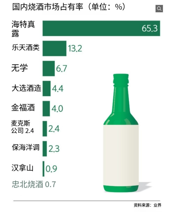巩固霸权:在烧酒的整体市场份额飙升至65% ,王者地位空前巩固。