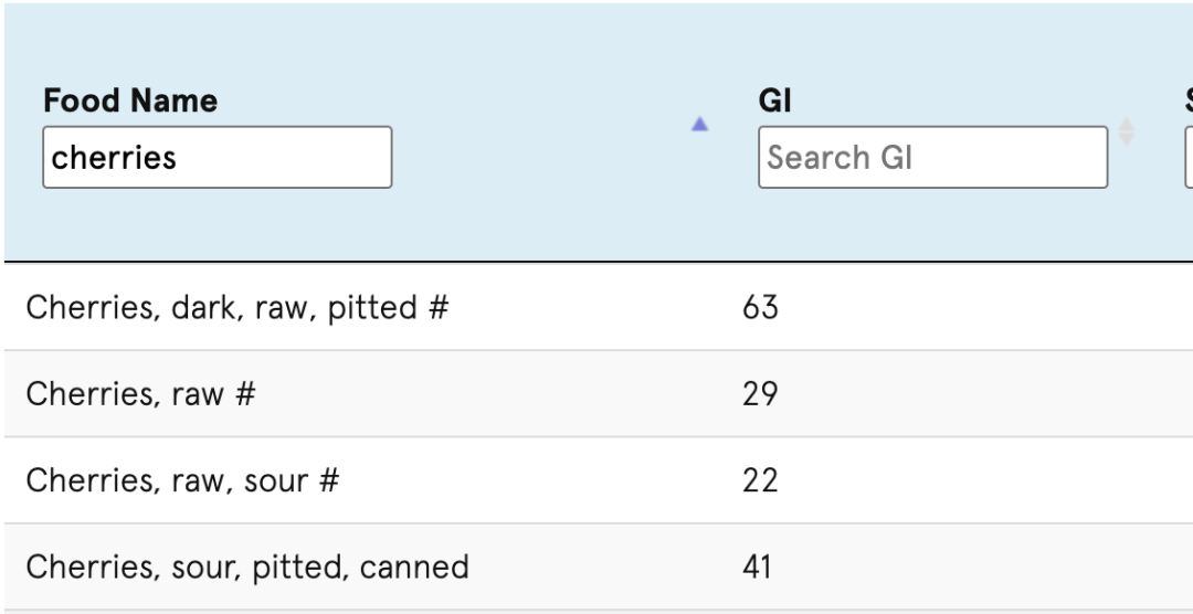 ▲图源:悉尼大学食物GI数据库。