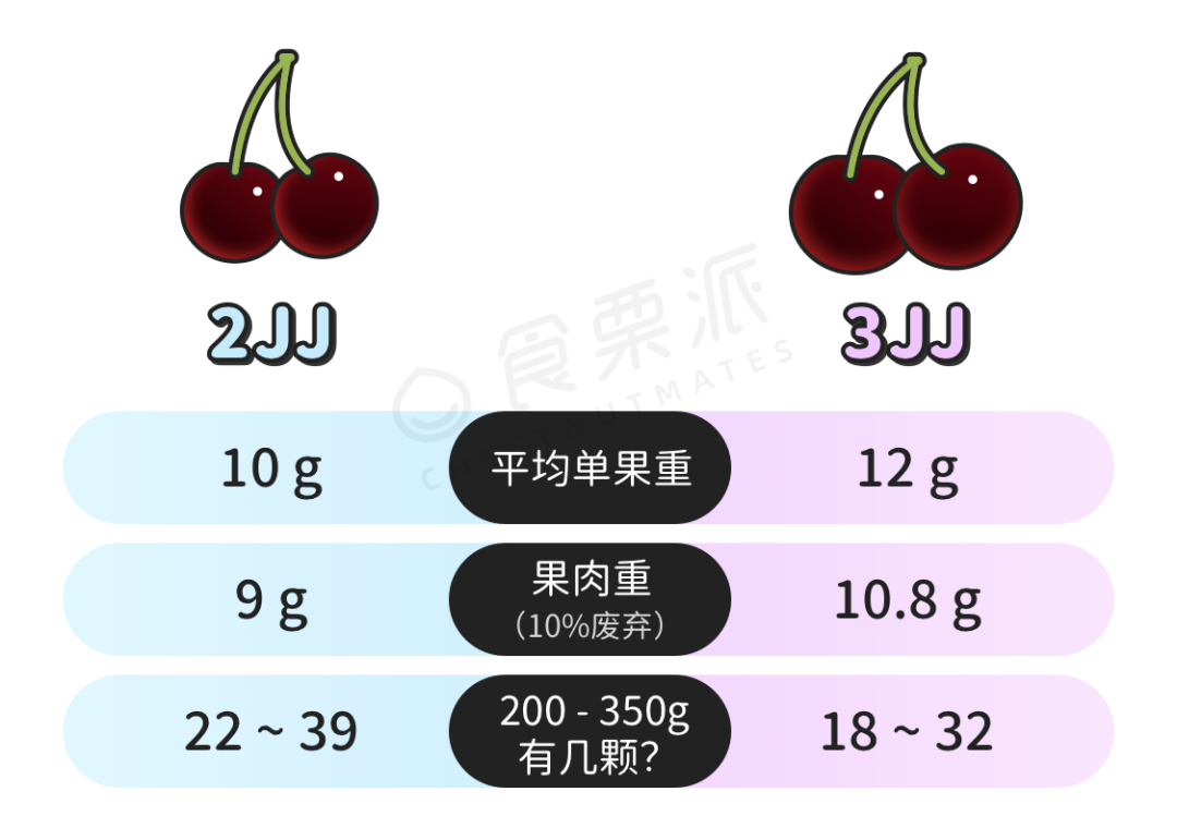 车厘子大小差异很大,中等大小的可能8g左右(去核后),大一点的有10g、11g。为了方便记忆和操作,可以按10g/颗来估算