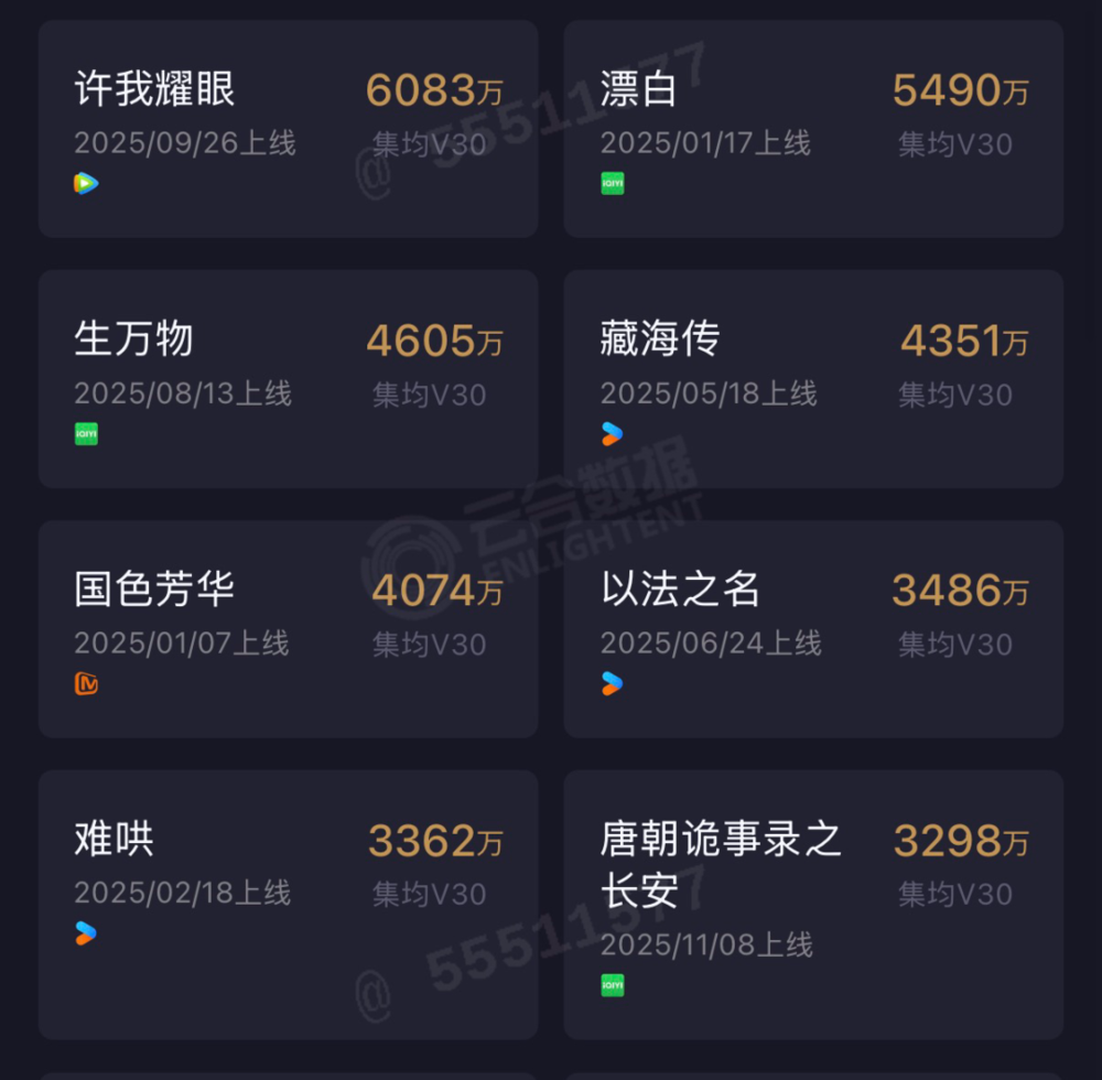 从云合数据来看,2025年是三年来国剧表现最差的一年。