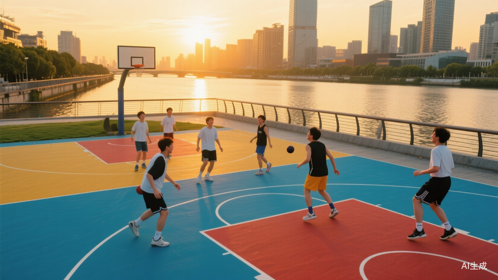 2024年10月24日,上海市苏州河边的中环立交桥下,年轻人正在打篮球。2021年这里被改造成了色彩跳跃的篮球场、体操房以及驿站等多元休闲空间,是苏州河沿岸最大规模的桥下空间改造项目。