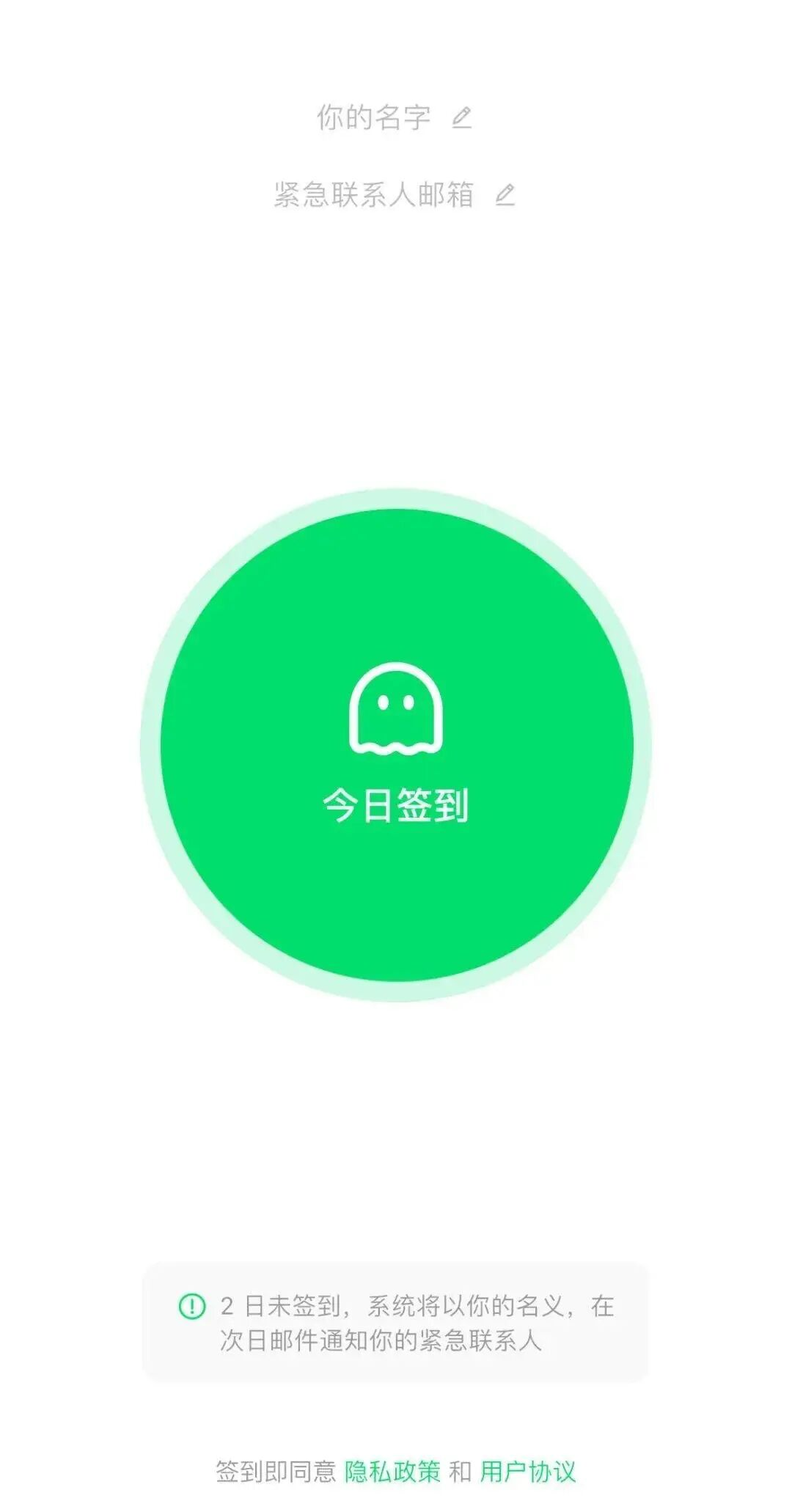这款以死亡命名的app,为用户提供每日生命签到服务,今天打卡今天活着,连着两天不打卡,app默认你已经死亡,并发送邮件给你死前提供的紧急联系人。