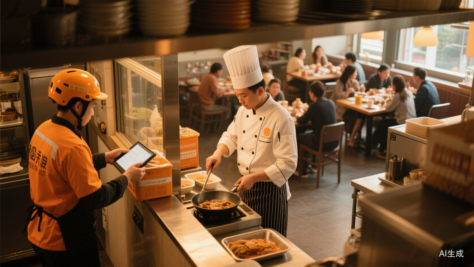 中午就餐,顾客吃饭要在店里,后厨厨师炒菜再快,也要等顾客坐下点菜后才能炒菜。