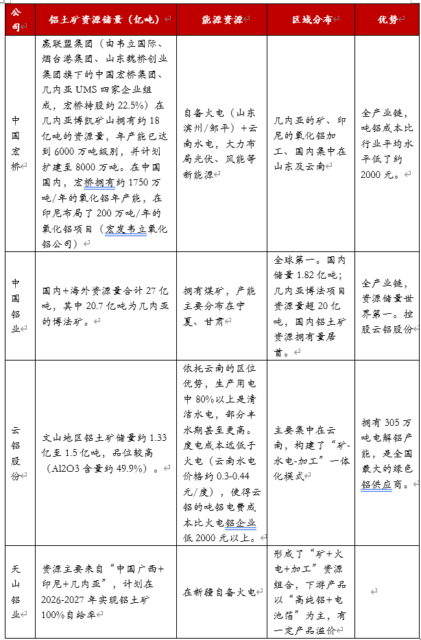 • 从资源优势来看,拥有铝矿、能源配套的企业在涨价预期下,业绩更有弹性。